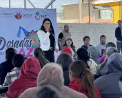 Ayer martes, la titular Bennelly Hernández, acompañó a la maestra Sara Hernández, en la entrega de apoyos alimentarios en la
